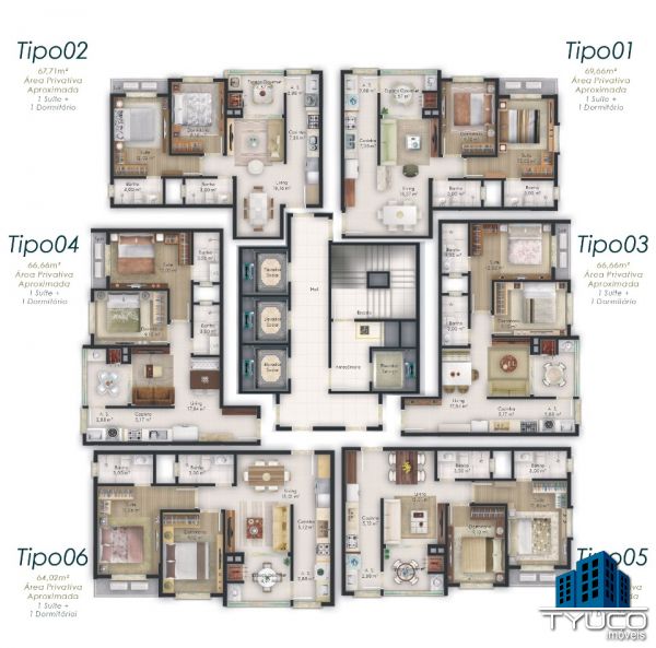 Tipo 01: 69,66m² de área privativa;