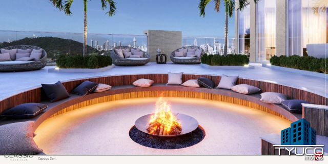 Terraço externo com espaço zen e áreas de descanso;