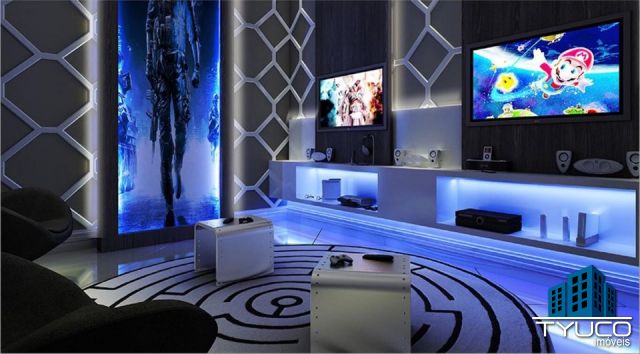 Para os jovens se divertirem com seus jogos eletrônicos, um game Station, totalmente mobiliado, equipado e com isolamento acústico.