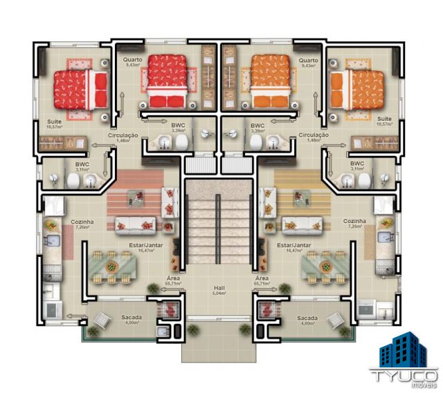 Área privativa de 65,71m².