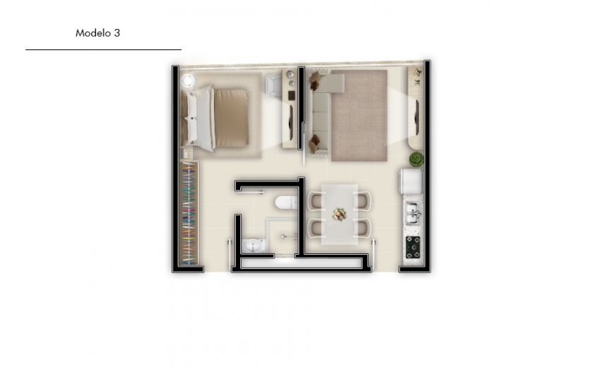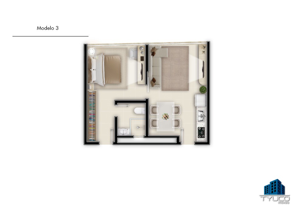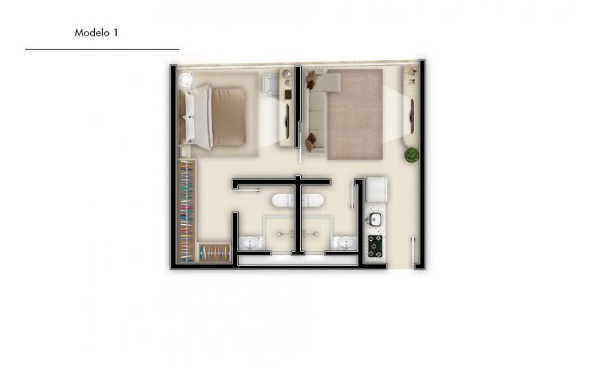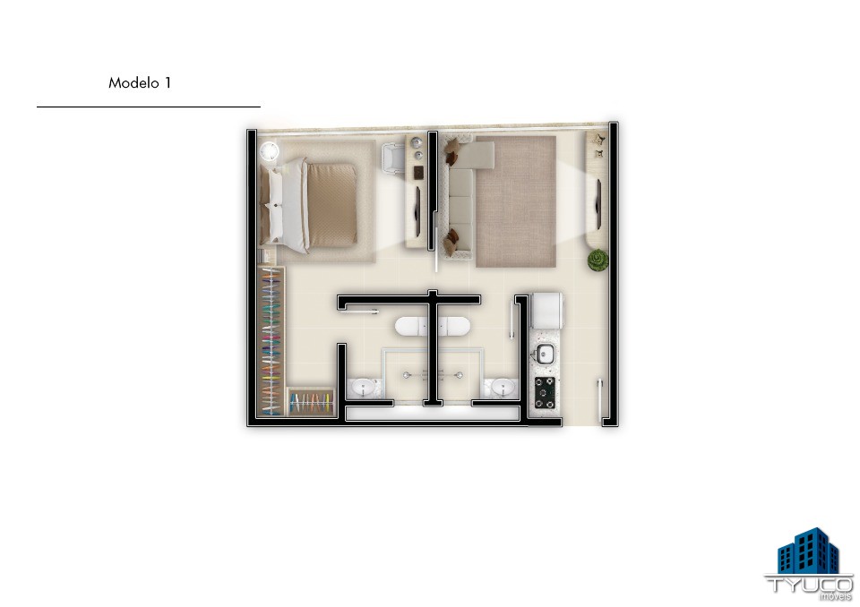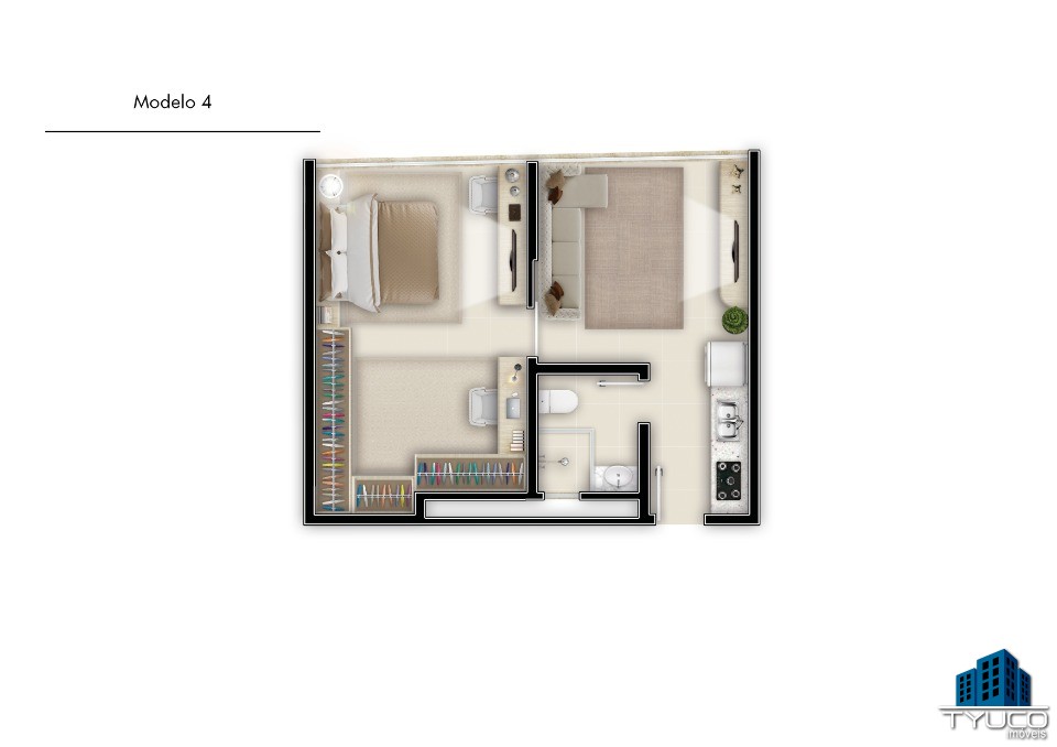 Opções com 01 ou 02 dormitórios, 4 opções de planta.