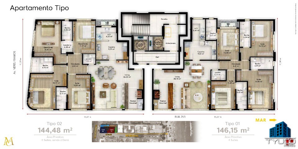 Lindos apartamento à venda no bairro Meia Praia em Itapema/SC