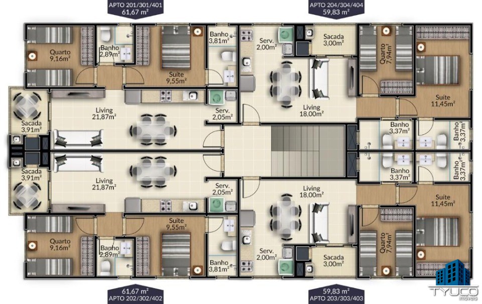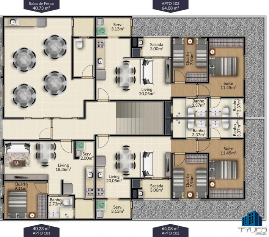 -Área de serviços;