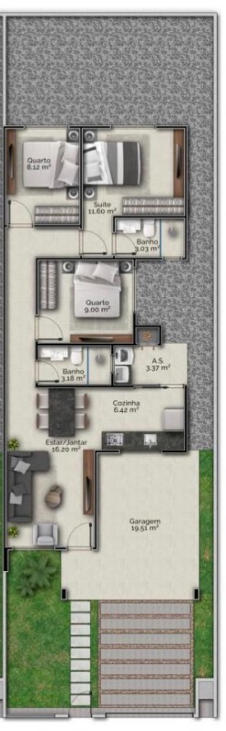 - Três dormitórios sendo uma suíte;