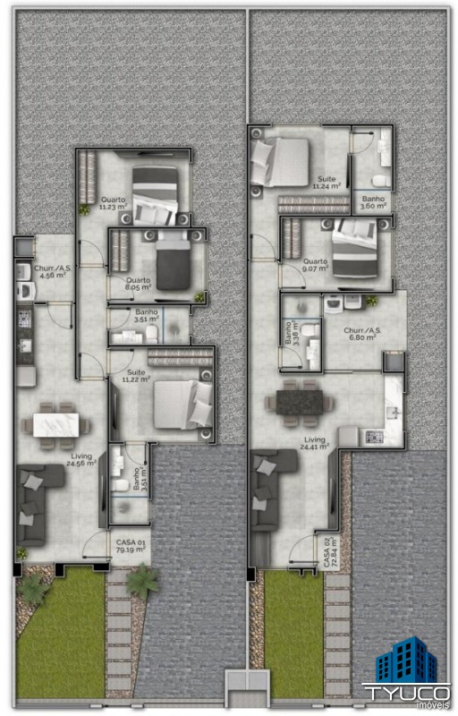 A casa conta um design moderno e acabamento diferenciado, totalmente pensado e estruturado para trazer elegância ao seu imóvel. Além disso, conta com espaço gourmet com churrasqueira.