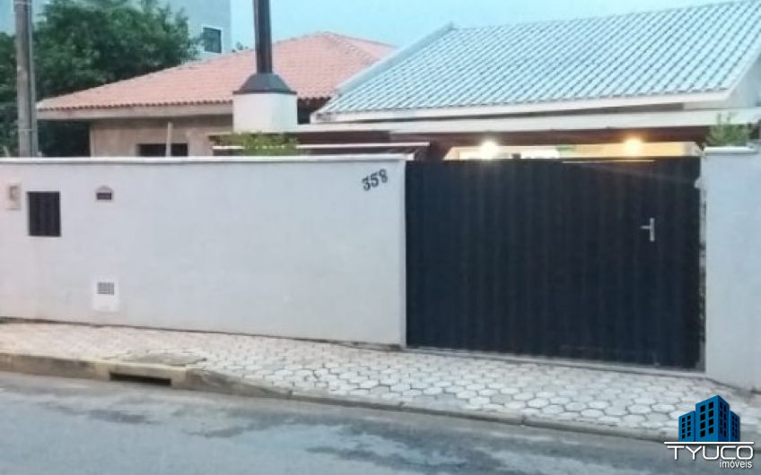 A casa além de estar localizada no coração de Tijucas, conta também com acabamento em calfino e porcelanato.