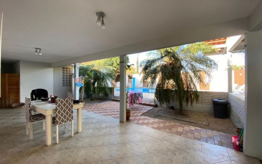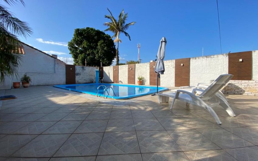 O imóvel também conta com amplo terreno, área de churrasqueira, piscina e com excelente localização.