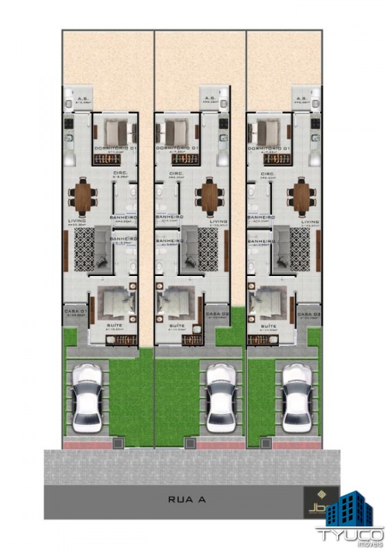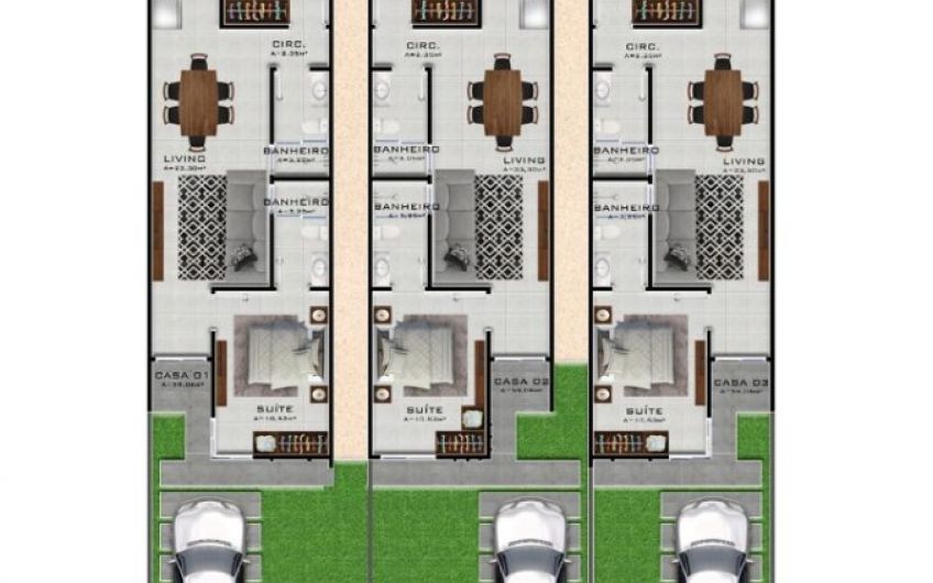 - Dois dormitórios, sendo um suíte;