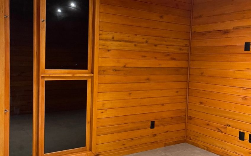 - Lareira revestida com pedras naturais;
